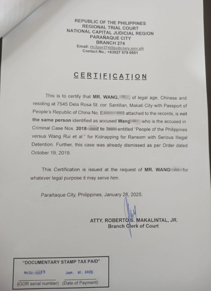 菲律宾法院证明是指由菲律宾法院出具的、用于证明某些事实或法律行为的合法性和真实性的文件。这些证明可以包括但不限于出生证、死亡证、结婚证、无犯罪记录等。