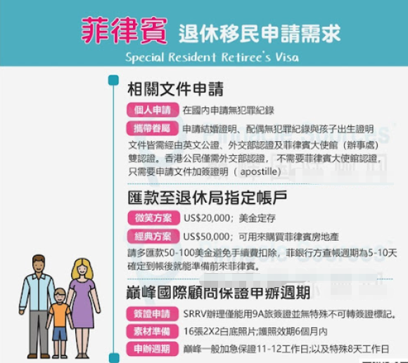 - 居留权:40岁申请人仍可享受长期居留权,并可自由出入菲律宾,无居住时间限制。