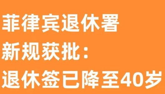 备受关注的菲律宾退休签证(SRRV)新规已获得正式批准,最低申请年龄将从50岁下调至40岁,预计自2025年8月1日起正式实施。