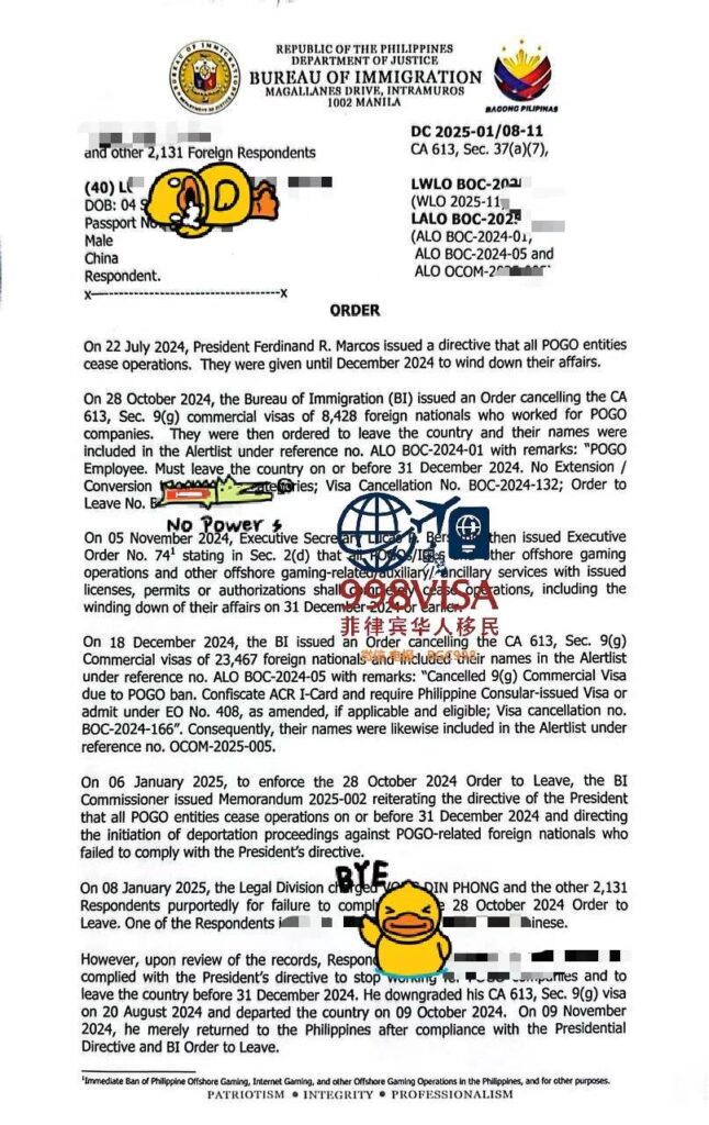 定义:是菲律宾移民局确定的工作签证黑名单。它针对的是那些工作签证挂靠的公司被移民局拉黑,因此员工也被列入黑名单的情况。