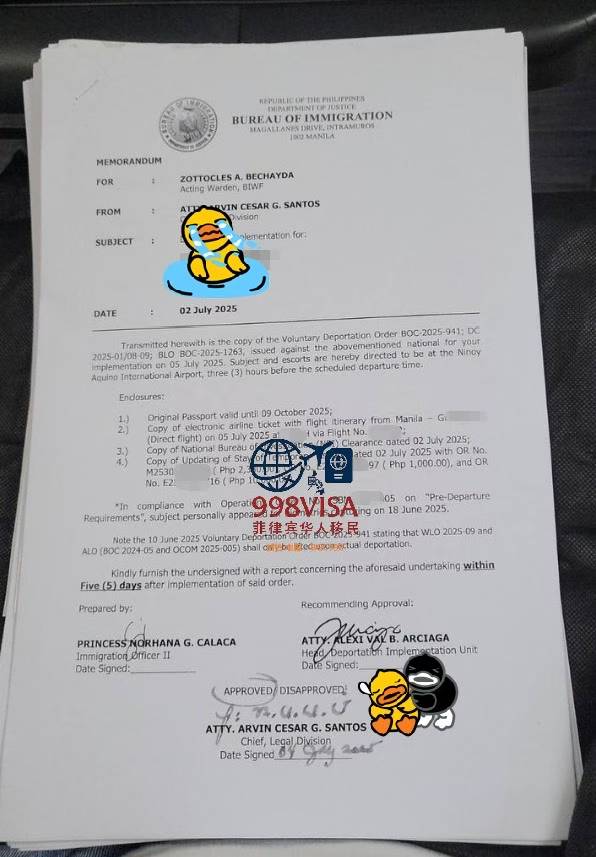 不处理的后果:无法离开菲律宾,直到问题解.决并获得相关机构批准。在机场等出入境口岸,一旦发现个人在名单上,就会禁止登机离境。证件会被扣押,个人行动受到严格限制,要按照移民局要求定期报到,报告自己的行踪。