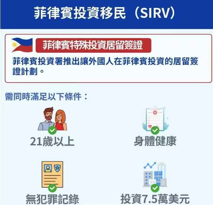 菲律宾 SIRV投资永居签证(简称投资移民)