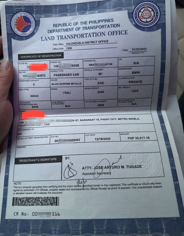 买方将获得新的 Certificate of Registration (CR)、最新的 Official Receipt (OR)、以及更新后的注册贴纸。部分LTO还会发放电子版副本,可用于后续续注册或查验。