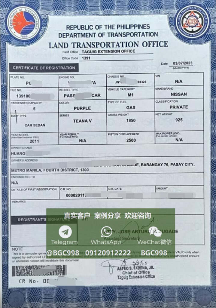 会稍有不同。商用车辆需附运营许可证(LTFRB Certificate)及停业证明,证明车辆不再用作公共运输,才能转为私人名义过户。