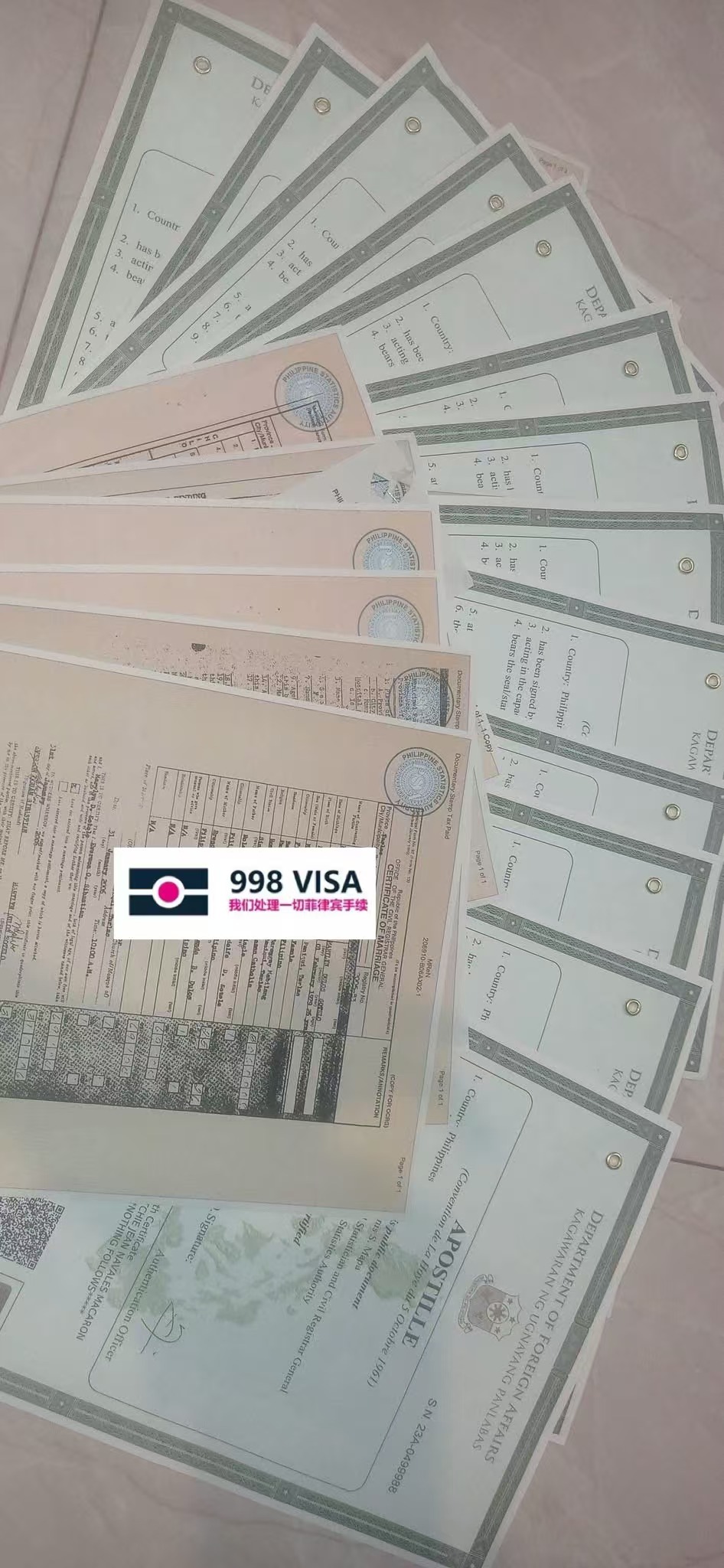 菲律宾998VISA是菲律宾Makati实体注册公司,已在菲服务19年以上,客户隐私安全保护、服务可靠。可上门取件或办公室提交文件。菲律宾政策时常变化,如需最新资讯欢迎联系我们。